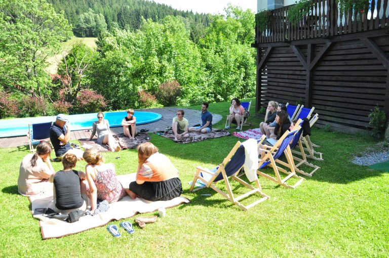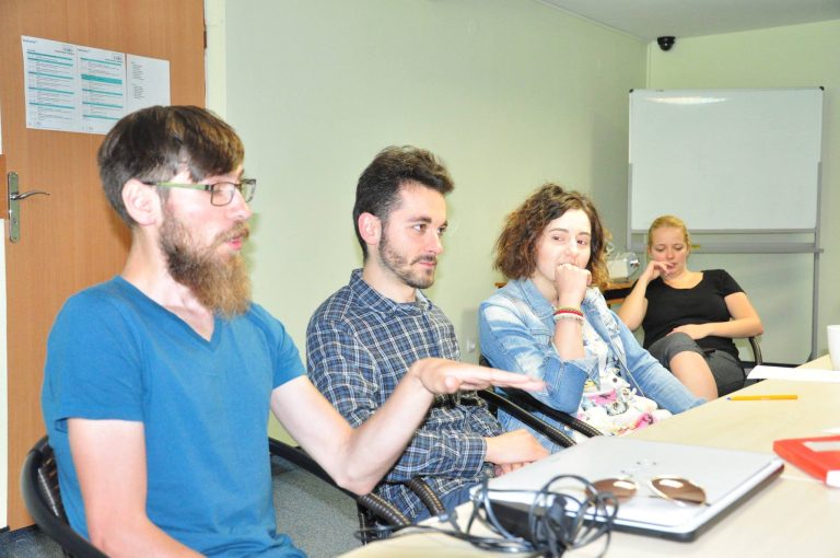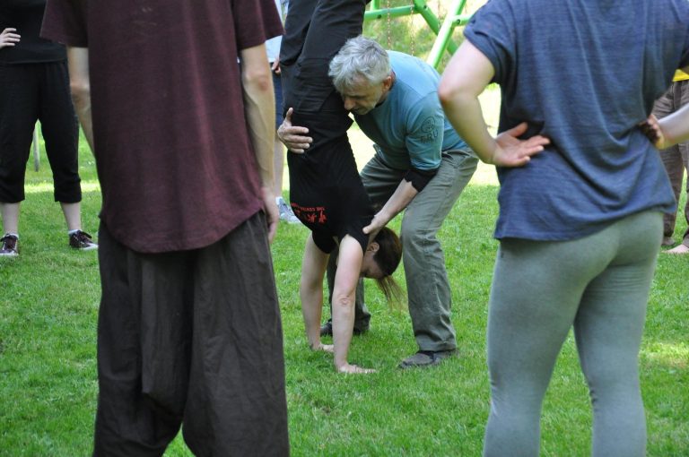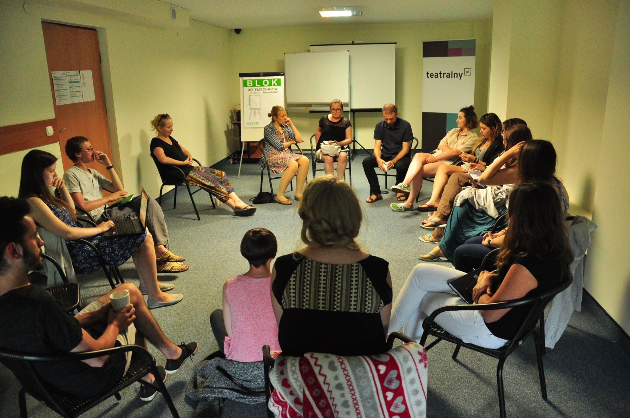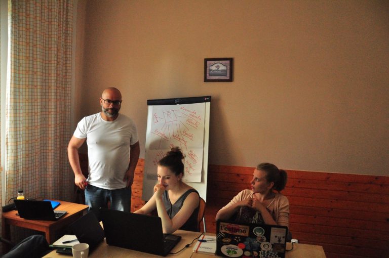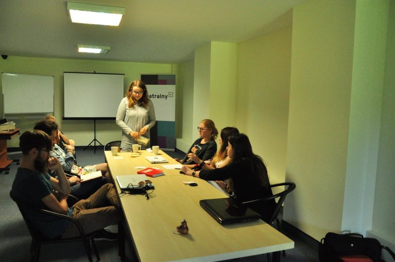 Druga część programu koncentrowała się na pracy z praktykami teatru — zajęcia prowadzili Tomasz Rodowicz i Elina Toneva ze Stowarzyszenia Teatralnego Chorea oraz reżyser Piotr Cieplak.